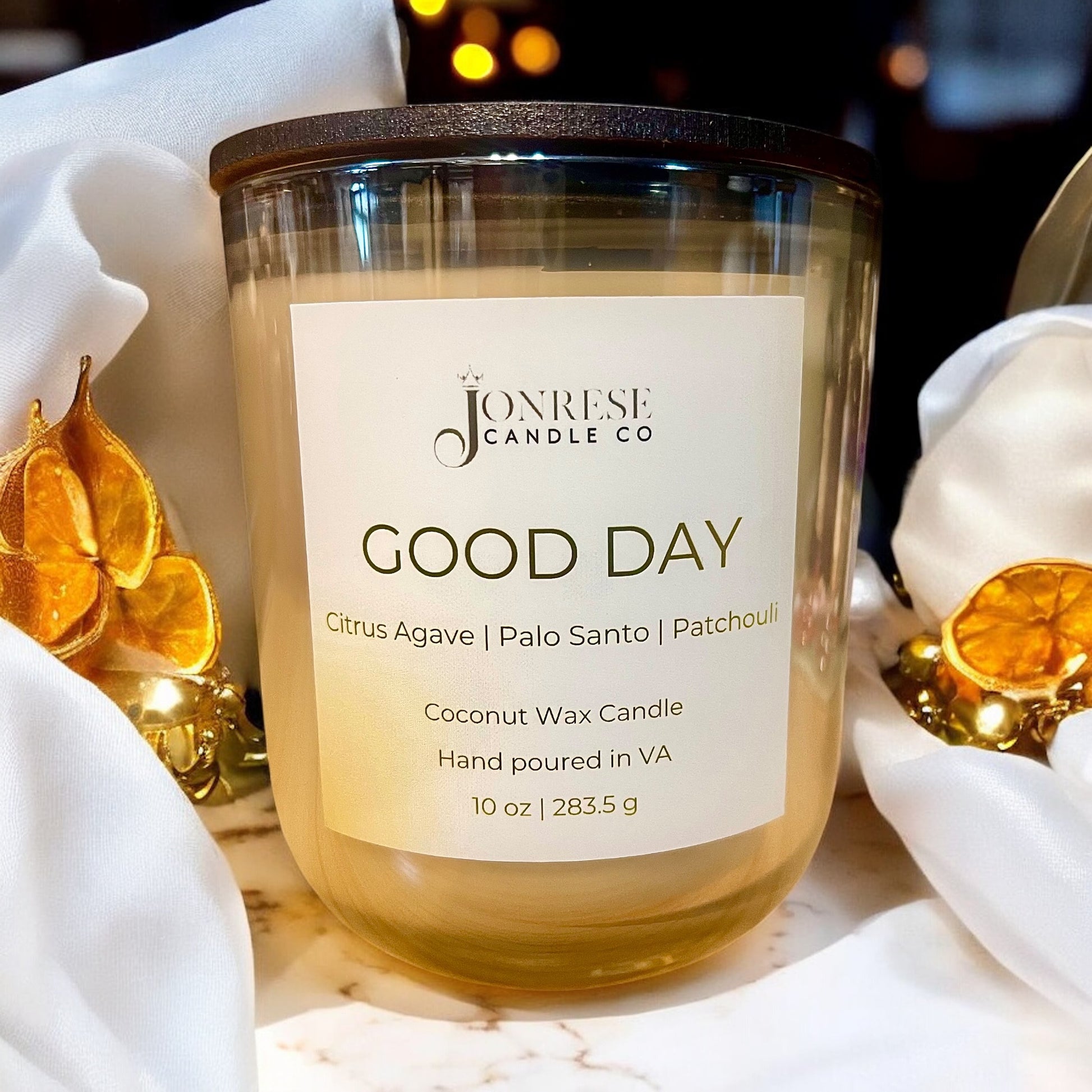 Light the "Good Day" candle to start your day with a positive, uplifting vibe. Its vibrant yet balanced scent will help you feel centered, refreshed, and ready to take on whatever the day brings.